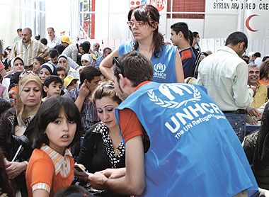 دمشق ـ لندن ـ «الشرق الأوسط» - بدأ العاملون في لجنة الهلال الأحمر السوري، امس، توزيع المعونات الغذائية التي قدمها برنامج الأغذية العالمي بالتعاون مع المفوضية العليا لغوث اللاجئين التابعة للأمم المتحدة على حوالي 34650 لاجئا عراقيا بسورية، ضمن حملة تهدف لمساعدة الحكومة السورية على تحمل عبء اللاجئين العراقيين الذين أرهقوا الاقتصاد السوري. ومن المقرر أن يتم توزيع المعونات التي تتألف من مواد غذائية مثل السكر والأرز والعدس، على حوالي 9100 عائلة عراقية بمعدل 500 عائلة كل يوم وعلى مدى 22 يوما.