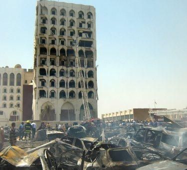 "الأخبار" بغداد (ا ف ب) - اعلنت مصادر امنية عراقية الاربعاء مقتل 75 شخصا وجرح اكثر من 300 اخرين في ستة تفجيرات بينها انفجار شاحنتين استهدفا وزارتي الخارجية والمالية في بغداد.