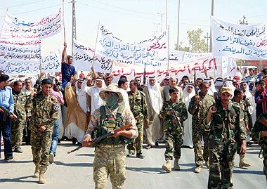 من جانبه قال حسين علي «أبو صدام» رئيس مجلس قضاء الحويجة «إن المظاهرة كانت شعبية عارمة ولا تمثل بالضرورة موقف الإدارة الرسمية لقضاء الحويجة أو مؤسساتها، بل إن الكتل السياسية وجماهير المنطقة خرجت بشكل عفوي تقريبا للإعراب عن رفضها لمقترح تشكيل قوات مشتركة من الجيشين العراقي والأميركي والبيشمركة لحماية كركوك، وتأكيد أن اتخاذ خطوة من ذلك القبيل إجراء غير سليم ويلحق أضرارا بأهالي الحويجة». وأضاف لـ«الشرق الأوسط» أن «تشكيل قوة من هذا القبيل هو محاولة لتثبيت الحالة الأمنية القائمة حاليا في كركوك من حيث عمليات التغيير الديموغرافي وما شاكل ذلك، لأننا نعتقد بأن مهام وواجبات قوات البيشمركة محصورة في حدود إقليم كردستان فقط، أما إذا وجدت في كركوك أو غيرها من المناطق فهي واقع الحال ميليشيات مسلحة حالها حال أي ميليشيات أخرى في العراق».