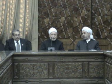 ومرة اخرى اقول الازهر الشريف في خدمتكم وقلبنا مفتوحة لفضيلتكم قبل ابوابنا وقبل اماكننا وندعوا الله سبحانه وتعالى ان يديم بيننا نعمة الاخوة الخالصة لوجه الله وليجعلنا جميعاً نتعاون على طاعة الله على ان يكون المؤمنون المسلمون جميعاً ان يهديهم الله سبحانه الى الطريق المستقيم وان يرفع النزاع من بينهم حال المسلمين الان كما ترونه وكما يرى الناس جميعاً حال كثير منهم لايسر بعضهم يقتل بعض وبعضهم يعتدي على بعض نحن كدعاة نريد ان نجمع الشمل اون نقرب بين الناس ونقرب بين الاخوة وكل من يشهد ان لا اله الا الله وان محمد رسول الله ويحترم اصحاب رسول الله (صلى الله عليه وسلم) دون تفررقة بينهم كل من يفعل ذلك نحن نرحب به واذا اساء علينا نحن ان نبين له اسائته ونرزى عليه ونبين له ان الحق هو الدائم وعقل هو الدائم والله عز وجل هو القائل ولاينصرن الله من ينصره ان الله لقوي عزيز ونحن نعاهد الله اولاً ونعاهدكم ثانياً ان نكون في خدمتكم وهذا امر واجب علينا