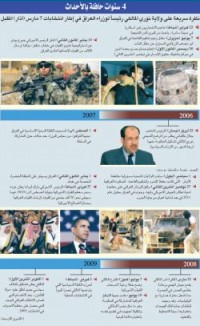 وعام 2008، توجه المالكي إلى جنوب العراق، وهاجم الميليشيات الشيعية التي كانت تسيطر على مدينة البصرة. وبفضل مساعدة عسكرية أميركية والدبلوماسية الإيرانية هدأت المدينة، وكانت النتيجة توتر العلاقة مع الحركة الصدرية التي يقودها رجل الدين الشيعي مقتدى الصدر، والتي تعاني الانشقاقات الآن. لكن المالكي عزز مصداقيته بين العرب السنة، ففي وقت لاحق وقع المالكي على الاتفاق الأمني، الذي وضع جدولا زمنيا لإنهاء الاحتلال الأميركي، وواجه القوات الكردية في الشمال، مما أثار غضب حلفائه الأكراد ولكنه كسب الدعم العربي. فخلال الانتخابات المحلية التي أجريت العام الماضي، فاز تحالف دولة القانون الذي يقوده المالكي بالأغلبية في 9 محافظات من بين 14 أجريت فيها الانتخابات، من بينها العاصمة.