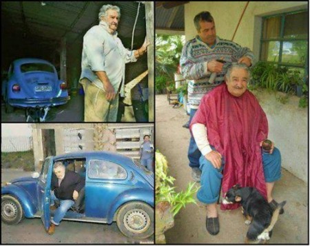 "ربما ستظن للوهلة الأولى أنه مزارع بسيط في إحدى القرى النائية أو شيئا من هذا القبيل. لا بل هو : خوسي ألبيرتو موخيكا (1) رئيس دولة الأوروغواي و هو أفقر رئيس، حيث يتقاضى راتب 12.500 دولار أمريكي لكنه يتبرع بــ %90 منه و يحتفظ بمبلغ 1250 دولار في الشهر و سيارته مهترئة.... بعيدا عن كل مظاهر الترف و الرياء الذي غالبا ما يكون على حساب الفقراء"...