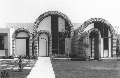 في "دار هديب"، ثمة قطيعة معمارية (بل واراها حتى ..ابيستمولوجية لمعنى البيت السكني!) تبدو واضحة للعيان، لما يشكله "فورم" الدار الاستثنائي، مقارنة مع تلك الفورمات المألوفة للدور السكنية البغدادية. ويمكنني ان اضيف، ان شكل واجهة الدار، هنا، تتجاوز حتى مألوفية المقاربة التصميمية التى اشتهر بها الجادرجي، وميّزته عن اقرانه من المعماريين العراقيين. فالعقد: "الطاق" الآجرى نصف الدائري، الذي يخلق بحركة ايقاعه المختلفة، مع تباين ارتفاعاته، صيغة التشكيل الاهم في معالجة الواجهة الرئيسية، يتمظهر هنا، بصيغة "قبو" ممتد، بديلا عن تلك العقود الآجرية التى ولع بها الجادرجي، واستخدمها في الكثير من مبانية التى صممها بعد 1965. ولئن كان حضور تلك الطاقات في جدران الابنية مختلفة الوظائف التى صممها الجادرجي، بصيغة "حفر" سطحية ذات بعدين لاقواس نصف دائرية، فانها في "دار هديب" تغدو ثلاثية الابعاد، بسحبها الى الامام كقبو برميلي، وبابعاد مختلفة، تضفي على كتلة وواجهة الدار خاصية نحتية، لم تتملكها معظم الابنية السكنية البغدادية. لكنها ايضاً، وفي الوقت نفسه، ترسي مفهوماً جديداً لتمظهرات الانتماء في تشكيلات البيت السكني البغدادي.