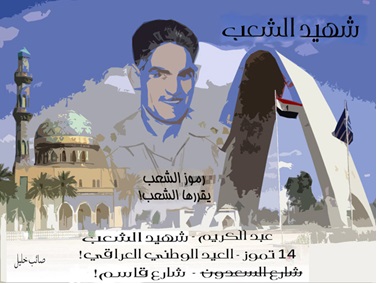 هذه الوقاحة ذكرتني بموقف مماثل ابدته مؤسسات الدولة والإعلام بشكل عام في تجاهل المطالب الشعبية قبل سنتين، عندما طالبنا بتكريم الشهيد عبد الكريم قاسم، بلقب شهيد العراق واعتبار يوم 14 تموز العيد الوطني للعراق. بل أن بعض الجهات الإعلامية تجرأت وطالبت بأن يكون يوم الإحتلال هو العيد الوطني للبلاد! ورسي التوازن بين الضغطين على ان يترك البلد بلا عيد وطني مثلما هو متروك بلا نشيد وطني! فمن الذي يقود ذلك الضغط المقابل القوي القادر أن يحرم الشعب من أن يقرر رموزه؟ ومن الذي يوجه الإعلام ليسلط كل هذا الضوء الإيجابي على العملاء والشخصيات التاريخية القريبة من الإحتلال من أمثال نوري السعيد ومحسن السعدون دون عبد الكريم قاسم؟ من الذي يشعر بالخطر من رمز ثورة تموز ولماذا؟
