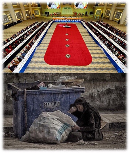 ومن الصعوبات التي يعاني منها افراد عصابة المجلس، ان تبرير قدسيتهم هو بادعائهم انتمائهم إلى إمام الفقراء علي، وتقليدهم له، وهو ما يضعهم في موقف شديد الحرج حين يراهم الناس في بذخهم مطابقين تماما لنقيضه الأشد والذي يحتقره: معاوية! (3)