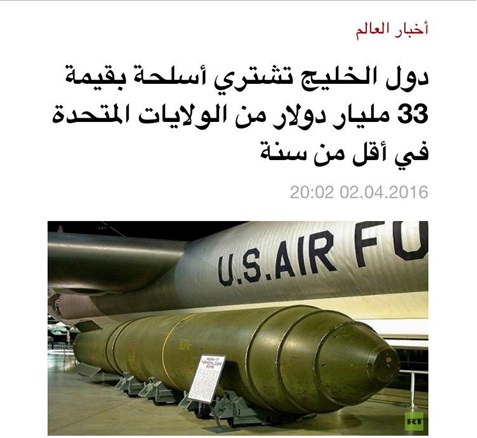 خبر يقول "دول الخليج تشتري أسلحة بقيمة 33 مليار دولار من الولايات المتحدة في أقل من سنة" يثير التساؤل الأبدي: من اجل ماذا تصرف دول الخليج ملياراتها بهذا الشكل؟ هل هي في حرب طاحنة مصيرية؟ من الذي يهددها ويجبرها على إهدار ثروة اجيالها، سوى ما أدخلوا في خيالها المريض عن إيران؟ لماذا يجب أن تبذل المليارات من أجل ان تبدل رئيسا لليمن بآخر؟ السعودية تكاد تدخل في أزمة اقتصادية تبيع بها شركة نفط أرامكو، ورغم ذلك تستمر في شراء السلاح كالمعتوه الذي يريد ان يحطم نفسه.. لماذا؟