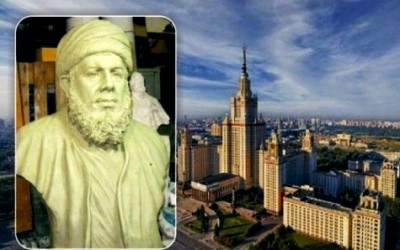 ويقع التمثال الى جانب رائد الفضاء الروسي الشهير (غوغارين) .. وعدد من علماء الارض في شتى المعارف والعلوم وهو العربي الوحيد من بين عظماء العلماء في هذا الموضع من التكريم.